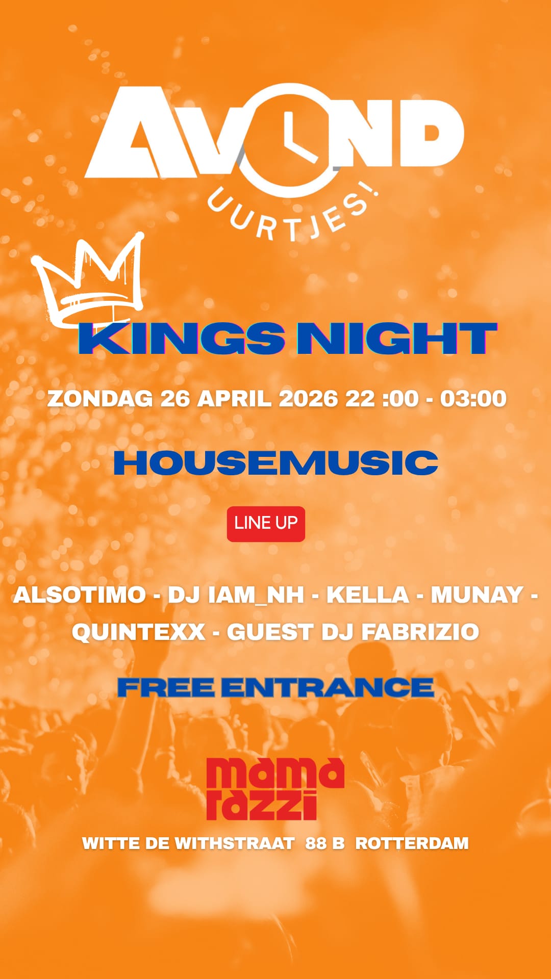 ✨️🧡✨️🧡✨️ Zin om te feesten op Koningsnacht? Kom Zondag 26 april naar de Witte de Withstraat! Onze DJ's blazen de heerlijkste house tunes door de speakers en Mamarazzi zorgt voor lekkere drankjes en intieme bar-vibes. De entree is gratis 🥳 dus kom langs en blijf gezellig plakken!