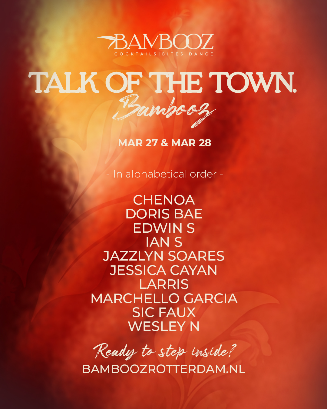 Bambooz in Rotterdam biedt u iedere week een levendige ervaring met de beste dj's van de stad. Geniet van heerlijke signature cocktails en onweerstaanbare shared dinners. Laat u verrassen door de unieke sfeer en de gezelligheid. Ontdek wekelijks nieuwe verhalen en goede muziek. Kom langs en beleef het zelf.