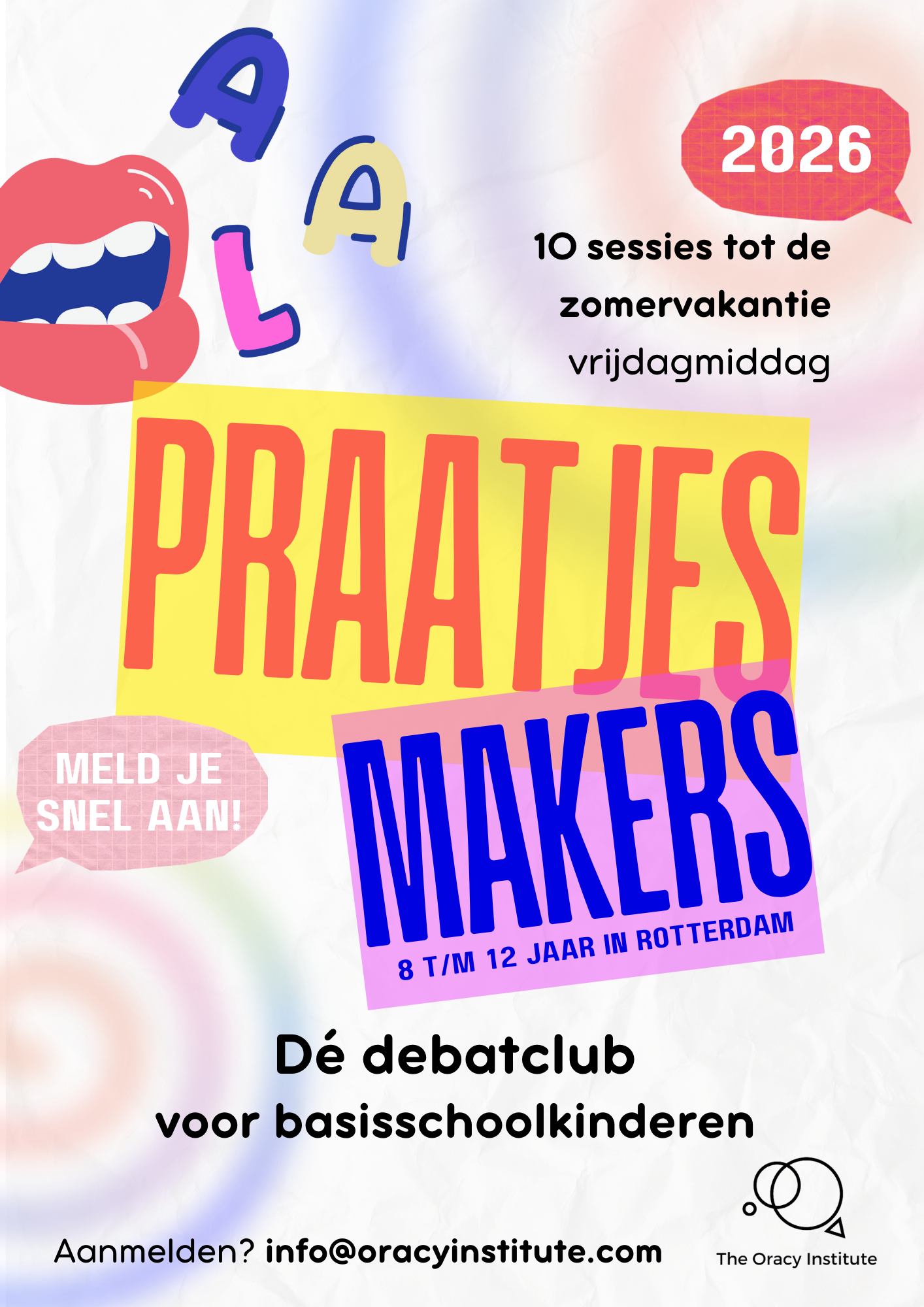 De Praatjesmakers is een debatclub voor kinderen van 8 tot 12 jaar die graag in gesprek gaan, uitdaging zoeken en serieus genomen willen worden. Het is een buitenschoolse plek voor kinderen die meer verdieping nodig hebben en die zich op school soms niet helemaal gezien voelen. Juist hier bloeien zij op. In een tijd waarin veel kinderen vooral achter hun scherm zitten, willen we ze écht leren praten, luisteren en nadenken over de wereld om hen heen. De Praatjesmakers biedt een structurele omgeving waar jouw kind hun stem kan laten horen, kritisch kan leren denken en hun talenten verder ontwikkelen.