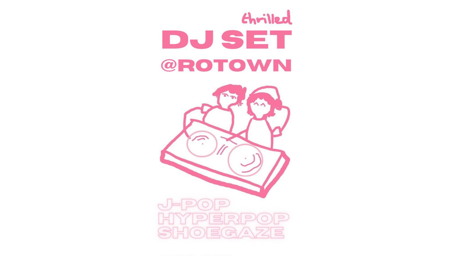 thrilled heeft voornamelijk een naam in de alternative/shoegaze, maar op 18 april vullen Ana HernĂŁndez Barrera en Edward Smith van de band Rotown met clippende 808s, idolmuziek en autotune. Denk aan artiesten als Perfume, CAPSULE, Bassvictim, Drain Gang en nog veel meer. Het beste van allemaal is dat het de hele nacht duurt.