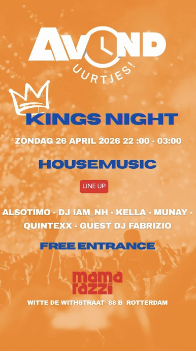 Op zondag 26 april wordt het op z’n Nederlands gevierd, in het teken van de koning. De nacht is geïnspireerd op Koning Willem-Alexander, waarbij etiquette plaatsmaakt voor de dansvloer. Verwacht een energieke sfeer, warme vibes en een publiek dat zich vrij beweegt.