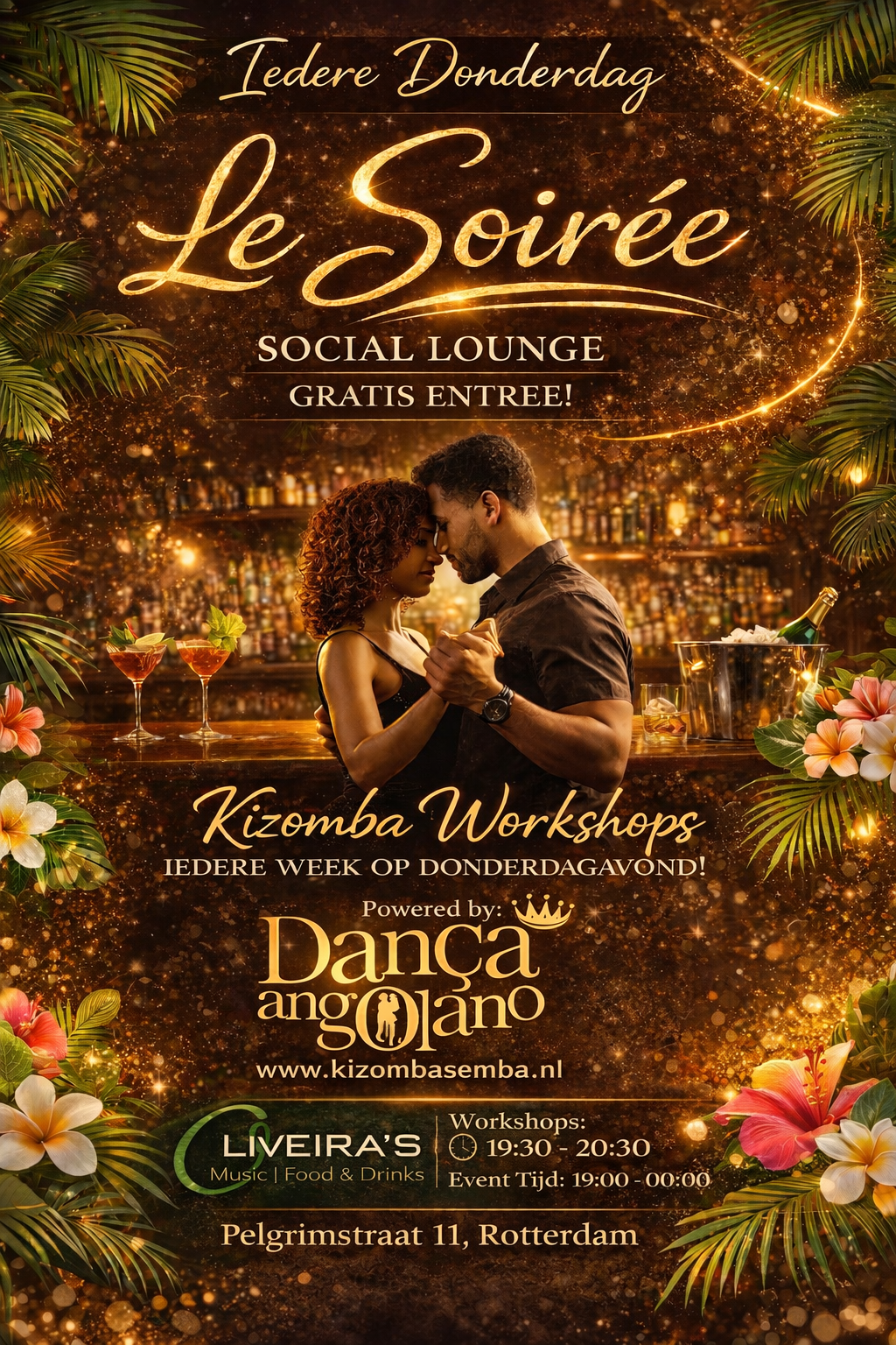 Iedere donderdagavond verandert Oliveira’s in Rotterdam in een bruisende ontmoetingsplek voor Kizomba liefhebbers. Je geniet hier van een warme sfeer en veel gezelligheid. Le Soirée draait om mensen verbinden: gezellig samenkomen, dansen en genieten.