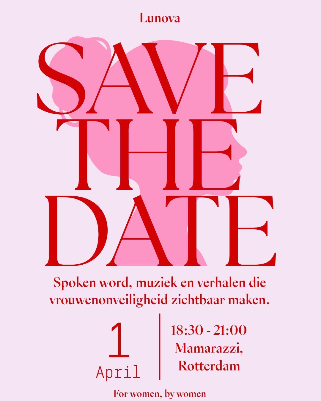 Lunova organiseert in Rotterdam een inspirerende avond voor jonge vrouwen bij Mamarazzi. Centraal staat vrouwveiligheid. Met live muziek, spoken word en panel talks stimuleert Lunova discussie over veiligheid, welzijn en positie. Ontdek hoe jij kunt bijdragen aan een veiliger Rotterdam voor jonge vrouwen.