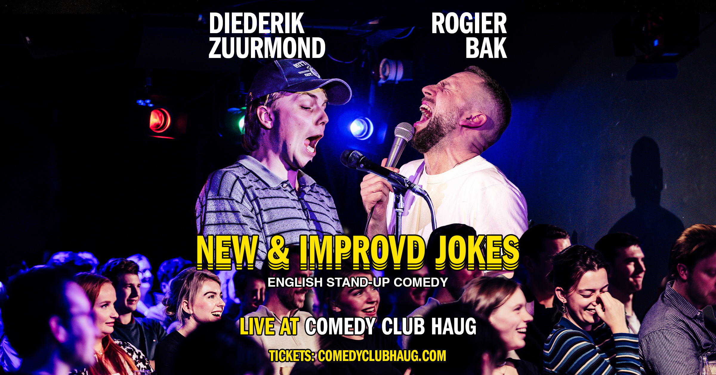 Join Diederik Zuurmond and Rogier Bak at Comedy Club Haug! A show with all-new jokes based on global and local news that they pitch to each other and you. Expect a healthy dose of crowd interaction and intrusive thoughts, making each show a completely unique mix between stand-up comedy and a live podcast. You get to be part of the joke development process and watch comedians squirm or triumph. Either way, it's incredibly fun for you.