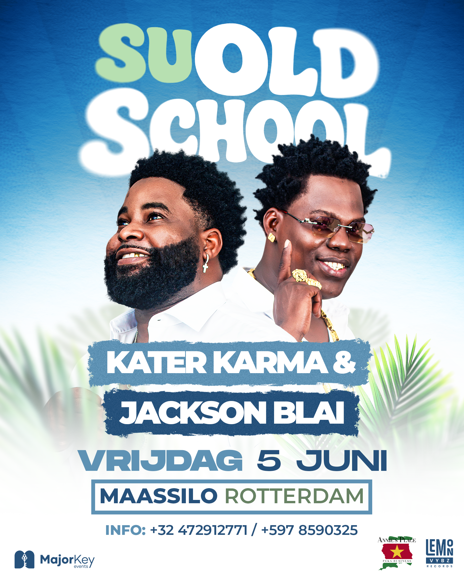 Over het Evenement SU Old School NL edition is een speciaal evenement waar iconische Surinaamse artiesten, die al lange tijd niet op het podium stonden, opnieuw optreden. Deze unieke show brengt generaties samen en staat in het teken van het vieren van de rijke muzikale cultuur van Suriname. Het belooft een avond vol nostalgie en muzikale hoogtepunten te worden. Praktische Informatie Het evenement vindt plaats op vrijdag 5 juni 2026 in de Maassilo in Rotterdam. De deuren openen om 21:00 uur en het feest duurt tot 04:00 uur. Tickets zijn verkrijgbaar vanaf €25. Voor meer details over de bereikbaarheid van de locatie, kunt u de website raadplegen.