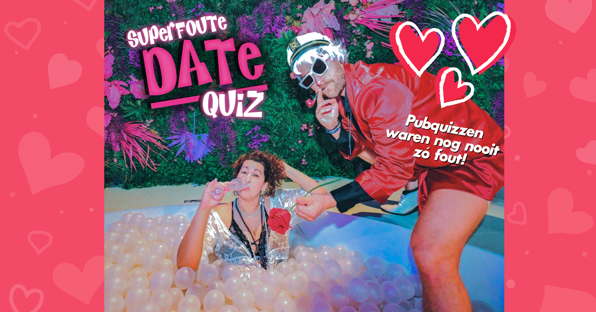 De Superfoute Date Quiz biedt een hilarische pubquiz-ervaring waarbij je jouw kennis over daten, flirten en relaties test. Verzamel jouw vrienden, vriendinnen of collega’s voor een avond vol grappige uitdagingen. Ontdek welk team het beste scoort op relatiegebied en strijd om de titel van nationale date-experts.