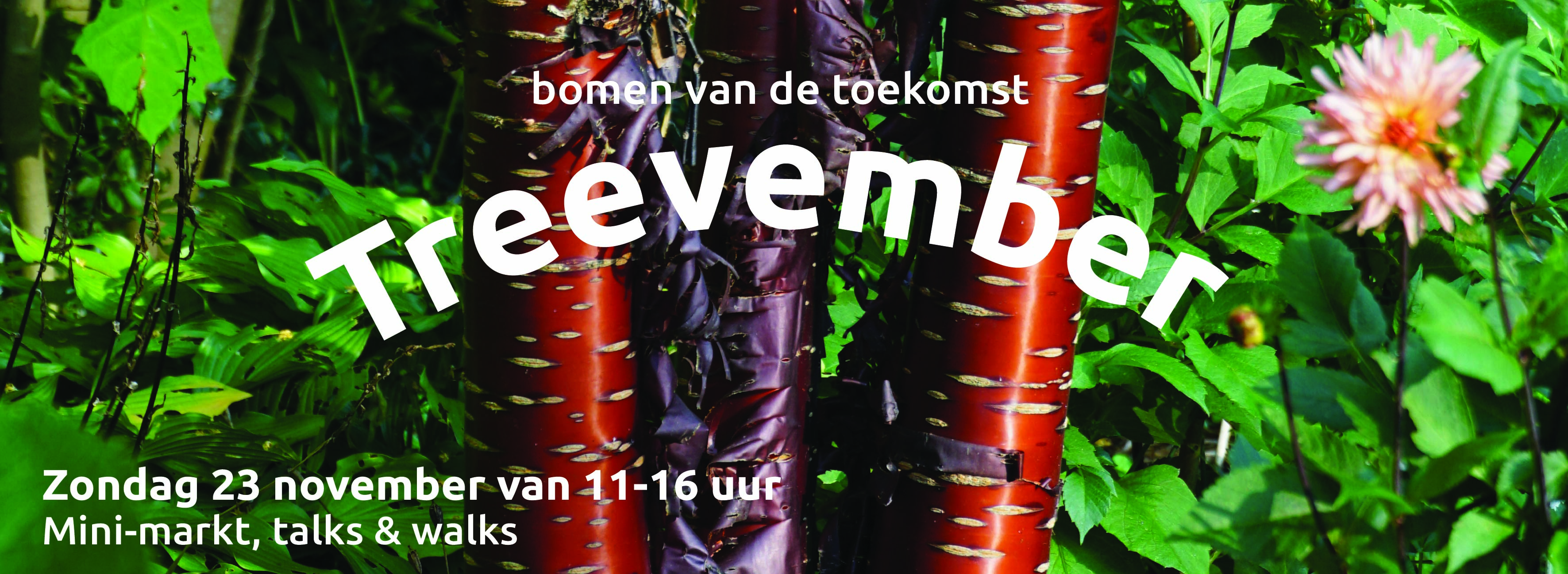 Treevember is een evenement dat volledig in het teken staat van bomen- Je ontdekt waarom bomen zo belangrijk zijn voor een groene en leefbare toekomst in de stad- Laat je inspireren door sprekers en ontdek hoe je zelf een verschil kunt maken met bomen- Er is advies over het aanplanten van bomen en je kunt een boom kopen uit het assortiment van gespecialiseerde kwekers- Bezoek een mini-markt met kwekers die je helpen bij het kiezen van de juiste boom of planten- Neem deel aan een rondleiding met groengidsen en ontdek de mooiste bomen in de botanische tuinen- Tijdens een workshop leer je verschillende boomsoorten herkennen en maak je een eigen bomenboek- Kortom, Treevember laat je zien hoe je met één boom een verschil kunt maken voor de toekomst.