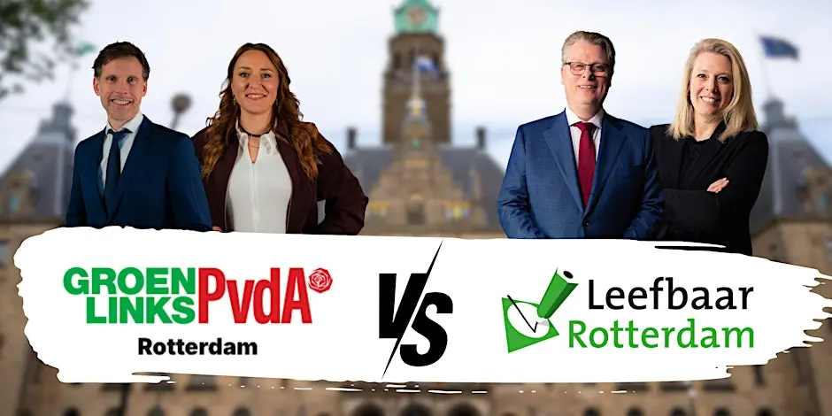 Wordt het Leefbaar Rotterdam of GroenLinks-PvdA? Op 28 februari organiseren deze partijen een verkiezingsdebat om te laten zien wat er te kiezen valt. Wat willen de partijen voor de stad? Hoe gaan ze dit bereiken en vooral: Waar staat Rotterdam over vier jaar?
