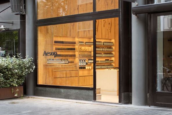 Aesop is in 1987 opgericht in Melbourne. Het duurzame merk is bekend vanwege de herkenbare amberkleurige pompflacons. Op de Meent is nu een eigen winkel geopend. De twee verdiepingen tellende ruimte is ontwikkeld in samenwerking met meubelmaker Sebastian Cox en wordt gekenmerkt door een eenvoudig interieur in warm kersenhout.