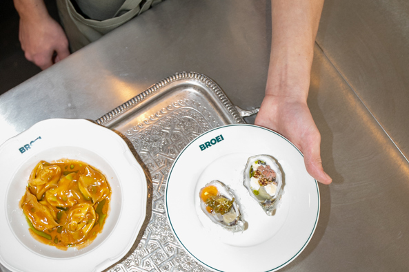 Dat pad leidt naar Broei, waar hij naast de keuken ook de bar en bediening aanstuurt. ’’Het is een kleine zaak,” zegt hij. ’’Eén team, dicht op de gasten. De bar staat centraal, dus iedereen is betrokken. Ik wil dat mensen zich welkom voelen, of ze nu iets drinken of uitgebreid eten.”