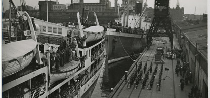 Coverfoto: De schepen Sibajak en Kota Inten arriveren bij de Lloydkade, 1949. ANP Foto