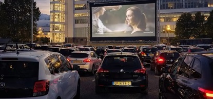 Film kijken vanuit de auto tijdens Cinair Drive-In Cinema bij de Van Nelle Fabriek