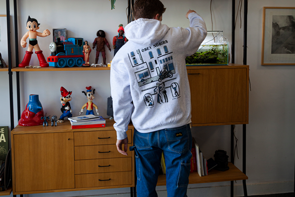 Funkie House heeft al jarenlang het bekende merk Obey in het assortiment. Er is een speciale shop-in-shop aan de Korte Hoogstraat, evenals een Obey corner voor vrouwenkleding. En regelmatig zijn er speciale collecties. Dit keer is er in samenwerking met Skatestore Rotterdam een exclusief ontwerp gemaakt door de multidisciplinaire Rotterdamse kunstenaar Nobirs. De samenwerking bestaat uit een limited hoodie en een t-shirt die de kenmerkende stijl van Nobirs laten zien.