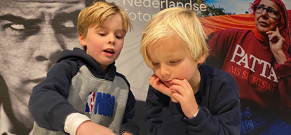 ‘We zijn naar het Nederlands Fotomuseum geweest waar het spel Zinnige Zintuigen voor ons klaar lag. Het spel bevatte niet alleen vragen, maar ook stofjes, geurtjes en zelfs een vergrootglas. Hiermee hebben we het museum verkend, waarbij het ging om dingen zien, horen, ruiken, doen en voelen. Ontdekken maar!’