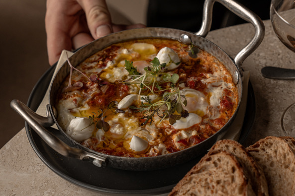 Het restaurant heeft een open keuken en met de middenbar als middelpunt is het een plek die uitnodigt om te blijven van ochtend tot avond en alles daartussenin. De keuken heeft een duidelijke Libanese signatuur. De dag begint met een all day breakfast: van shakshuka met harissa en labneh tot eggs benedict met za'atar, of een avocado toast op zuurdesem. Later op de dag verschuift de kaart naar zuurdesem pita's, Libanese wraps en salades met granaatappel en dukkah. Als borrel en bites komen tempura garnalen, gyozas en falafel met labneh op tafel. Zeven dagen per week, van vroeg ontbijt tot late borrel, en toegankelijk voor iedereen.