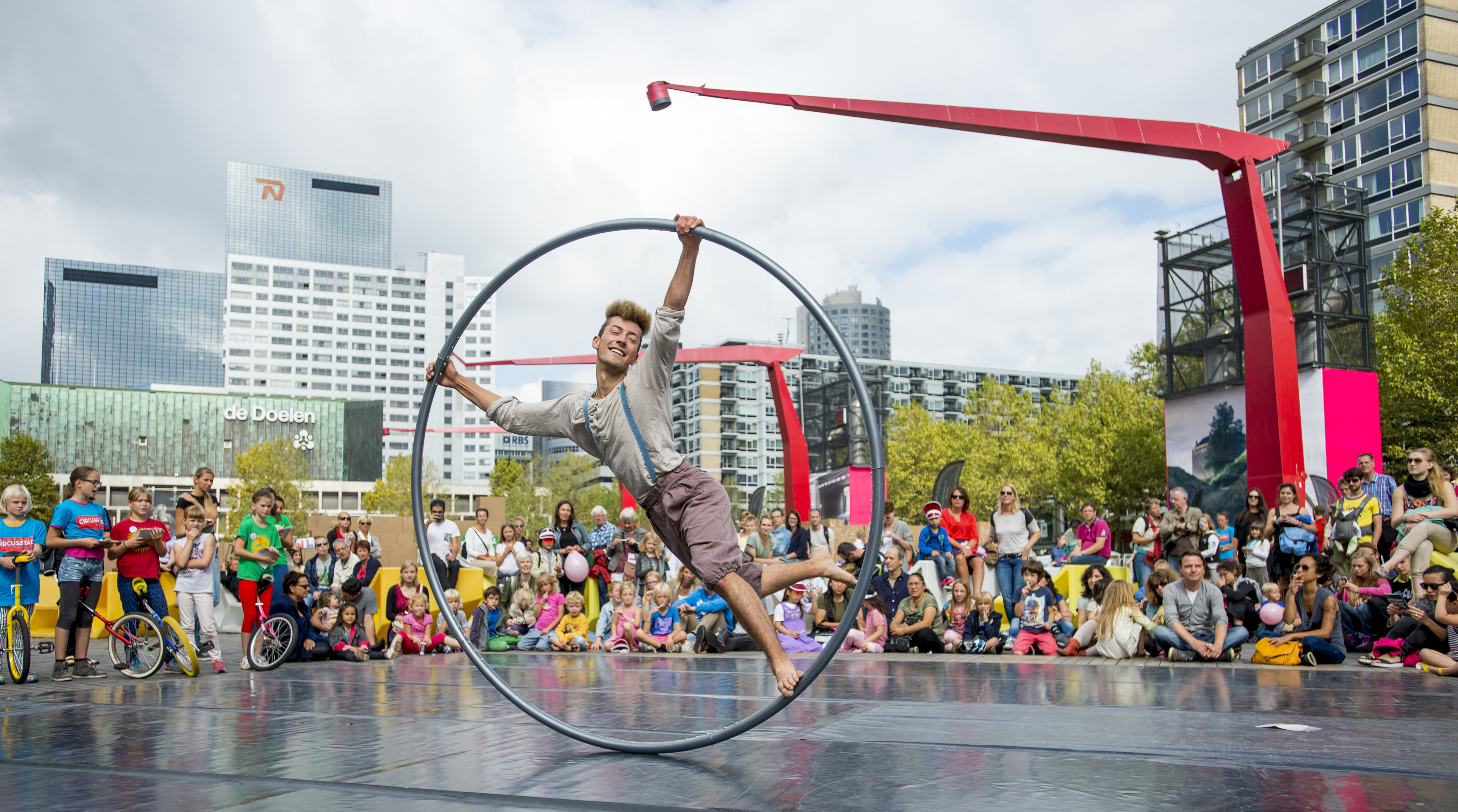The largest circus festival in the Netherlands on and around Schouwburgplein during the spring break in Rotterdam