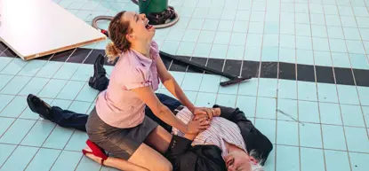 In GERMAN STAATSTHEATER, a group of performers takes you on an energetic and performative journey. In Hochdeutsch mit Variationen, they investigate through an incessant slapstick of overwrought bodies what community and solidarity can still mean in the individualistic and success-based society in which we live.
