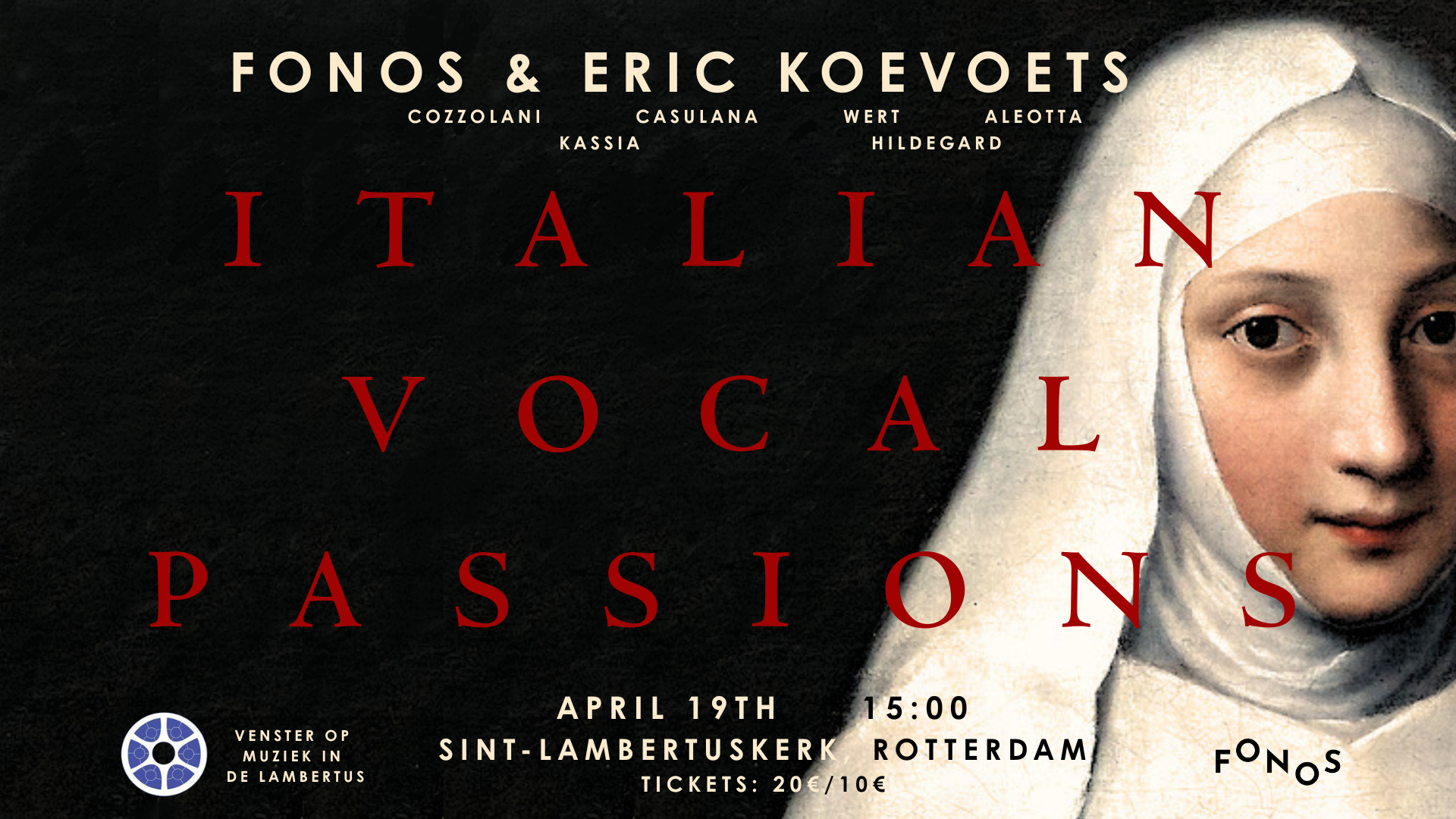 FONOS takes you on a captivating musical journey. Discover the rich world of Italian vocal passion, with a special focus on music from the 15th and 16th centuries. You will hear works that are rarely performed.