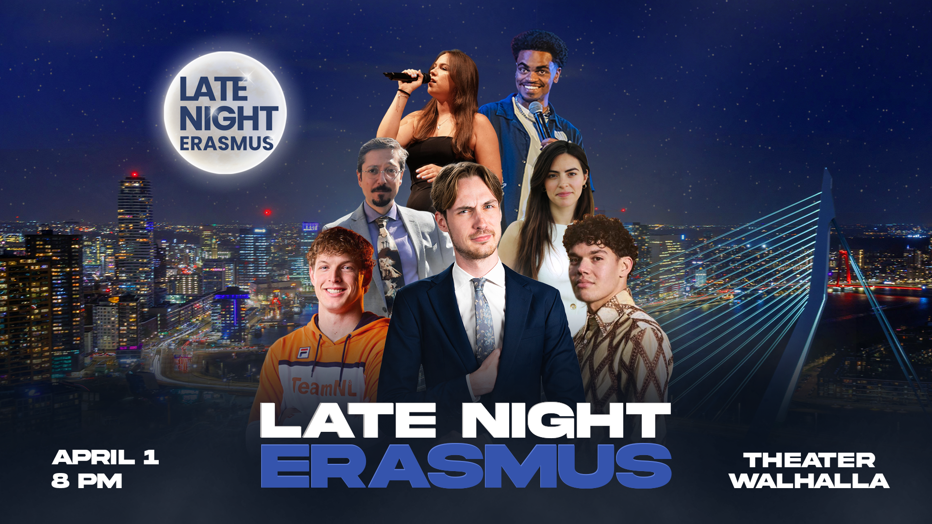 Get ready for the second edition of Late Night Erasmus – the only English-language Late Night Show in the Netherlands! Expect an evening full of humor, inspiring stories, live entertainment, and surprises.
