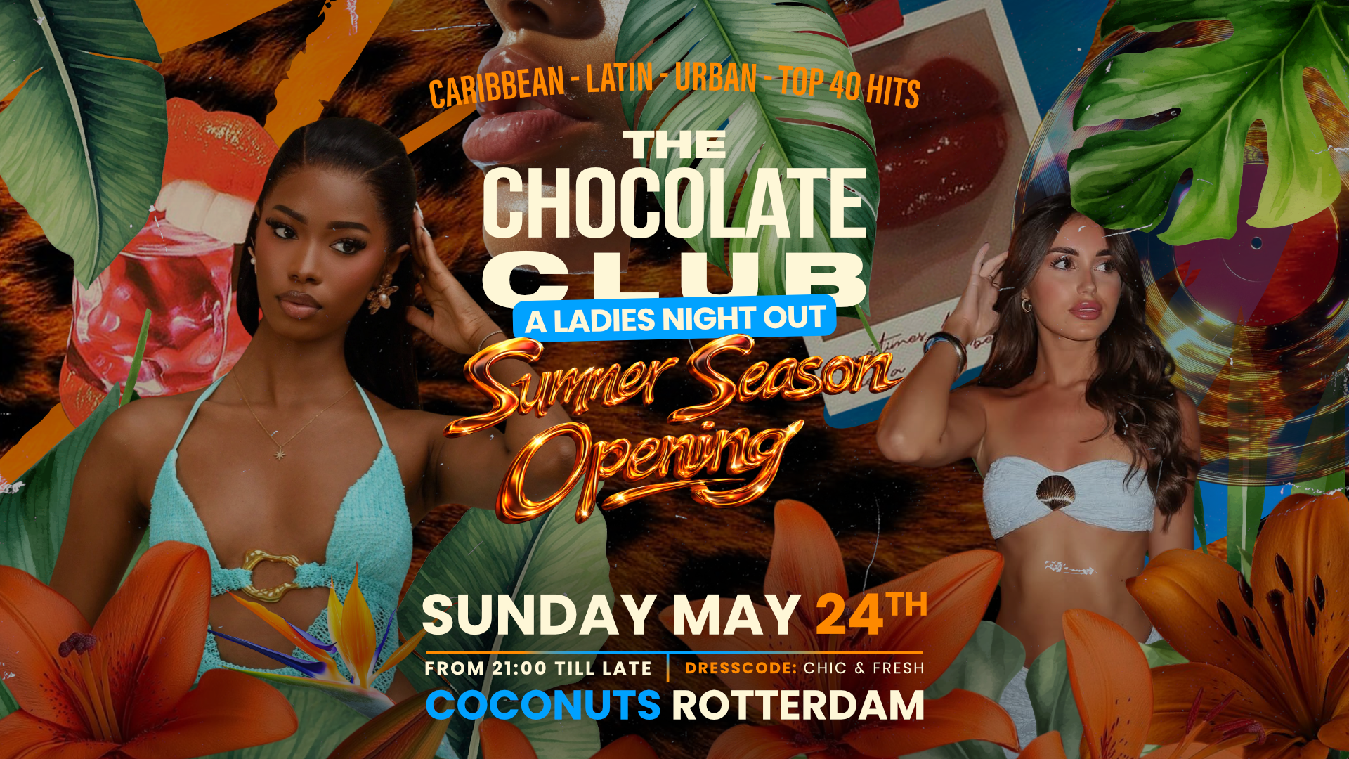 At The Chocolate Club, celebrate the 'Summer Season Opening' with a mix of Caribbean vibes, Latin American passion, urban energy, and the best hits from the Top 40. Let yourself be swept away by the atmosphere and enjoy the unique combination of musical styles that fill the evening.