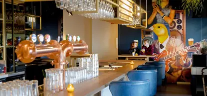 Je kunt bij De Gele Kanarie terecht voor lunch, diner en diverse soorten bieren, wijnen en mixdranken. Op de tap hebben ze ook een eigen gebouwen biertje: DGK ofwel Gele Kanarie. Natuurlijk vernoemd naar Rotterdammer Martin van Waardenberg die met een gele kanarie een pilsje bedoelt. Het eigen bier wordt in huis gebrouwen, in de kelder van het restaurant. Je ziet de grote biervaten door de glazen vloer bij het podium en bij de wc's in de kelder is de brouwerij ook op ooghoogte te bewonderen.