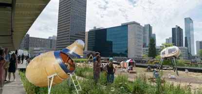 Op het dak van het voormalig Station Hofplein is een groen stadspark gerealiseerd. Je kunt hier, in het Luchtpark Hofbogen picknicken en wandelen tussen het groen.