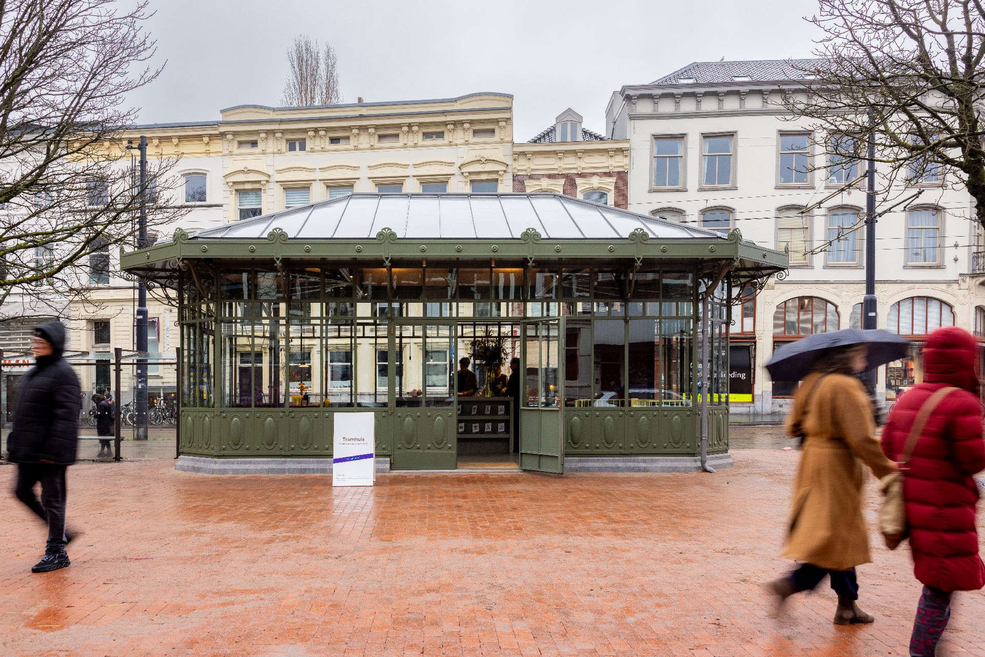 Midden in het centrum van Rotterdam straalt het kleinste Rotterdamse icoon weer in volle glorie. In 1914 verrees het Tramhuis in Art Nouveau-stijl als modern wachthuisje voor tramreizigers. Het ranke gebouwtje overleefde wonderbaarlijk het bombardement in 1940 en werd daarna meerdere keren verplaatst tijdens de wederopbouw van de stad. Na diverse omzwervingen kreeg het Tramhuis in de jaren zeventig een horecafunctie en eindigde het als nachtcafé en kebabzaak. Dit deed de constructie, die volledig bestaat uit licht staal en glas, geen goed. Op initiatief van Stadsherstel Rotterdam en Droom en Daad, is het gebouw volledig ontmanteld, zorgvuldig gerestaureerd en getransformeerd tot de eerste kiosk voor stadswandelingen
